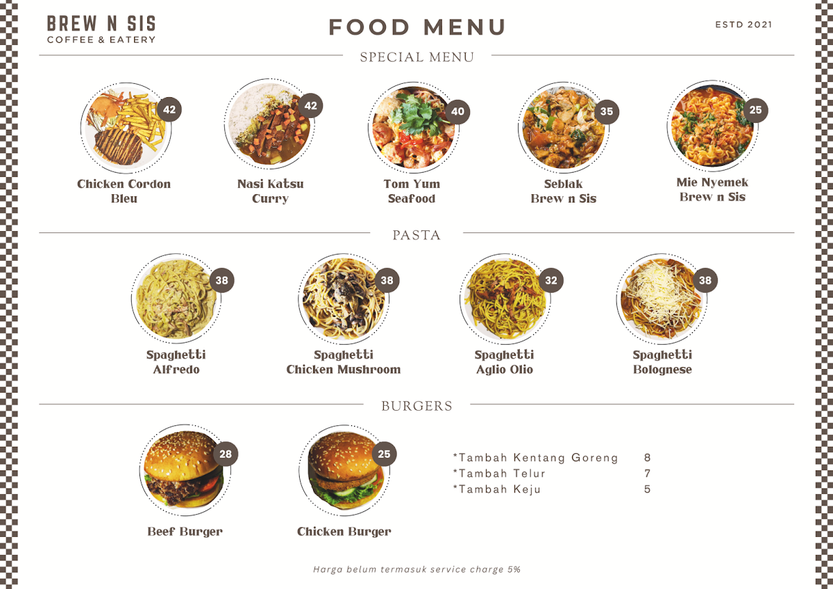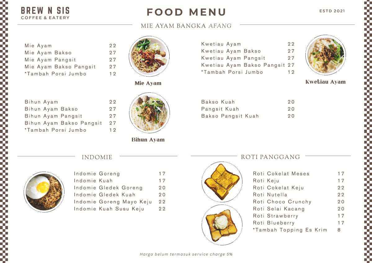 Brew n Sis Coffee & Mie Ayam Bangka Afang Menu